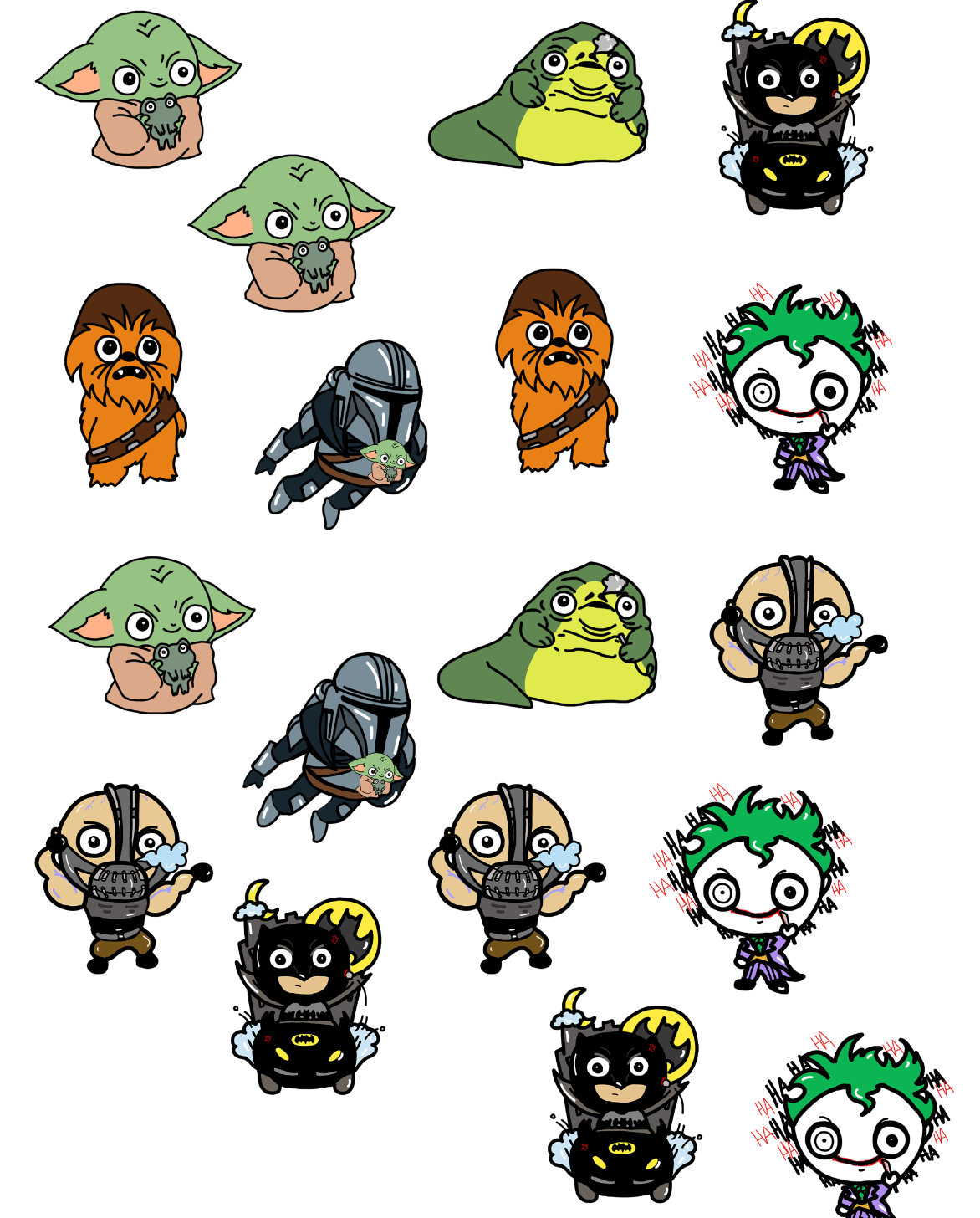 Besides customizing Funko Pops, I drew and printed my digital illustrations to create my own stickers. Rather than spending $5 on a sticker from Etsy, I wanted to illustrate characters through my style and make my own stickers. Oftentimes, I would send these stickers to customers as a mini thank you gift :)